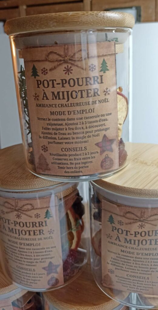 Noël approche à grands pas et ses marchés aussi !! Cette année sera placée sous le signe des fruits séchés par mes soins avec lesquels plusieurs créations peuvent être réalisées, de l’étiquette cadeau en passant par les porte-clefs, les pots-pourris décoratifs ou à mijoter (ces derniers étant 100 % naturels et bios). Les voici en images !