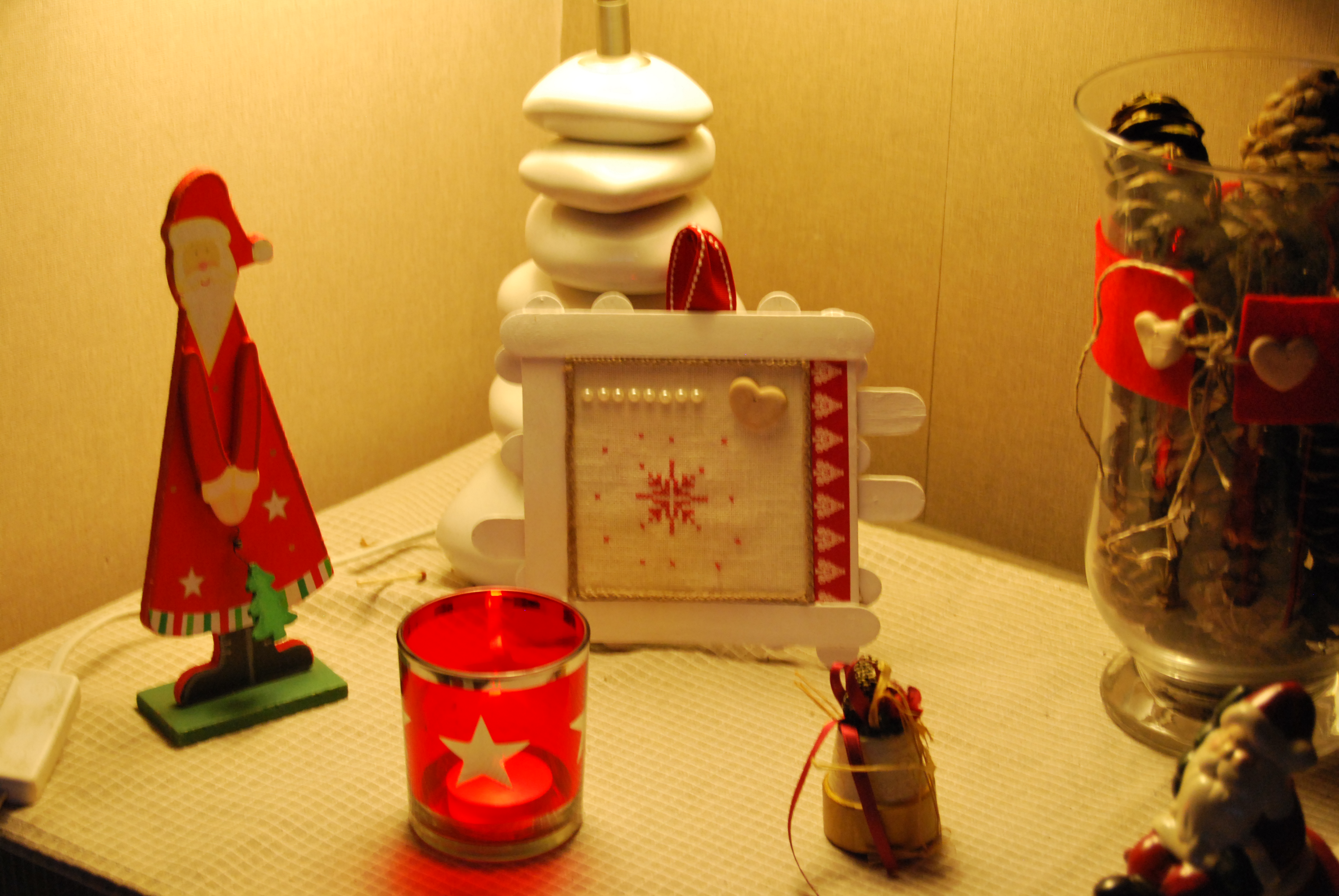 D’abord, sur fond de feutrine rouge avec un encadrement de mon crû :