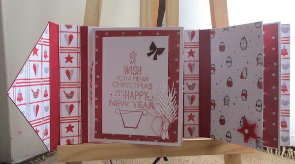 La structure est inspirée d’un tuto de Gaëlle sur le site quiscrap.fr et les papiers imprimés proviennent de chez Action (bloc de 15 sur 30 cms).