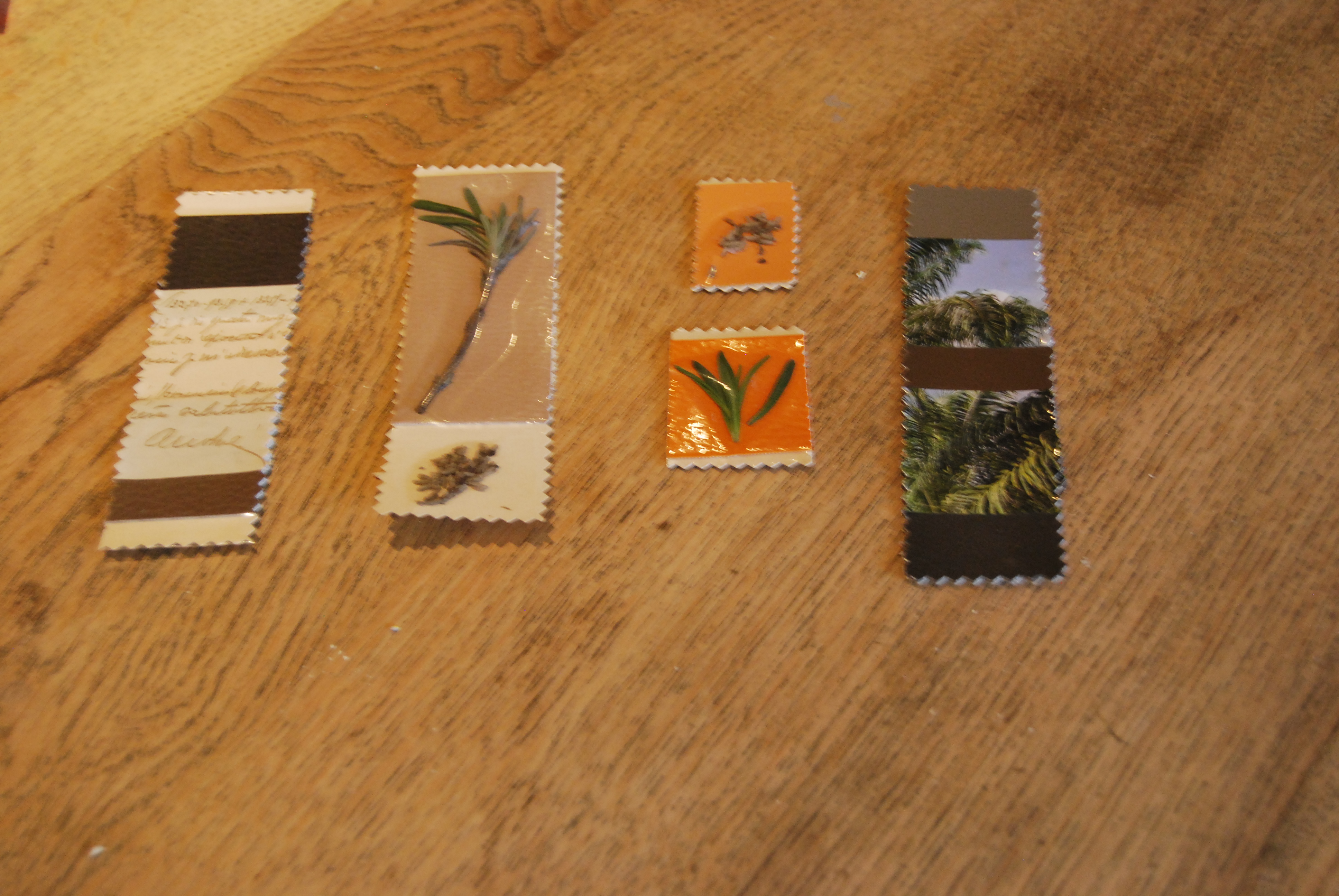 Les motifs sont issus de magazines ou de folders touristiques, excepté les végétaux (feuilles et grains de lavande du jardin) et bien évidemment l’extrait de lettre manuscrite ! Celle-ci a été retrouvée dans un paquet de vieux papiers et il m’a semblé judicieux de l’utiliser et de perpétuer ainsi un morceau d’histoire et du patrimoine …. En bref, de petits cadeaux « récups » personnalisables à souhait qui j’espère auront fait plaisir à leurs destinataires !