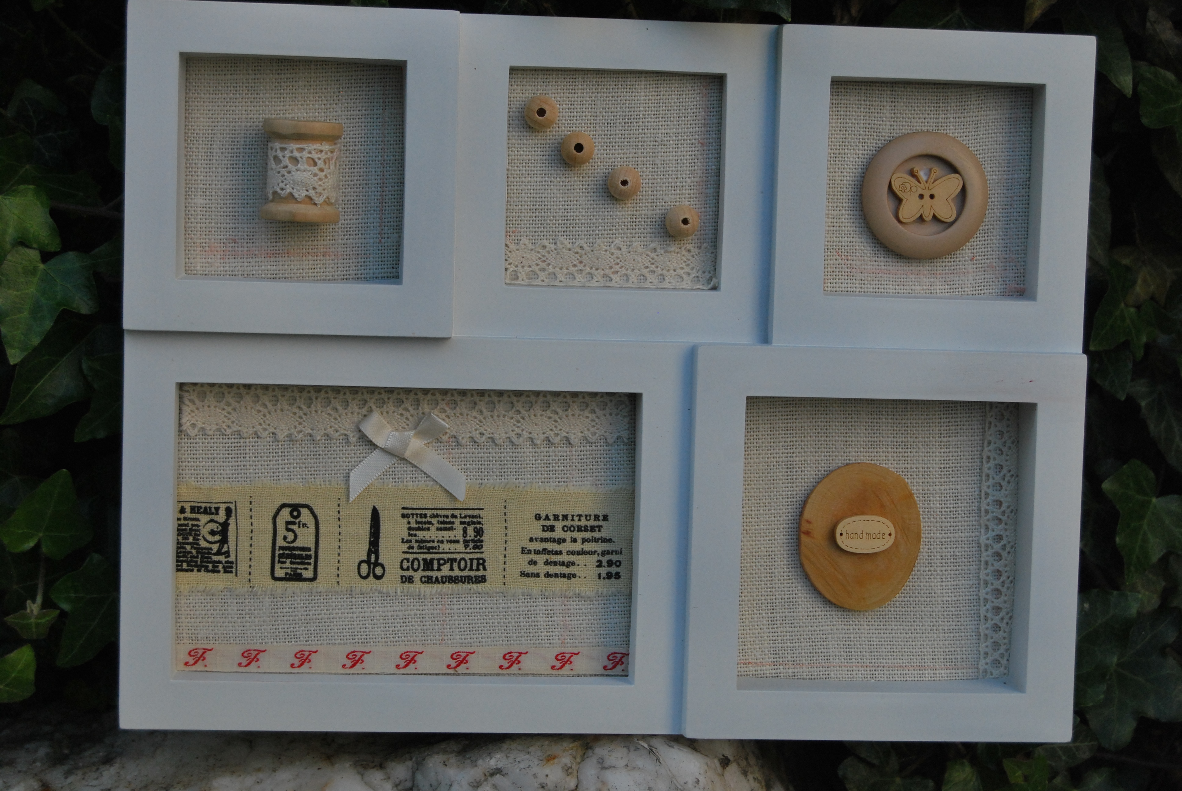 Bois, dentelles, boutons, lin et rubans … tout un programme … que j’ai vraiment apprécié de réaliser sur le coup d’une inspiration soudaine ! J’ai utilisé un ruban ancien à l’initiale de mon prénom trouvé dimanche dernier à Ruette et que je n’avais jamais trouvé sur les brocantes traditionnelles de la région, les autres accessoires faisant partie de mes « réserves » constituées au fil du temps !