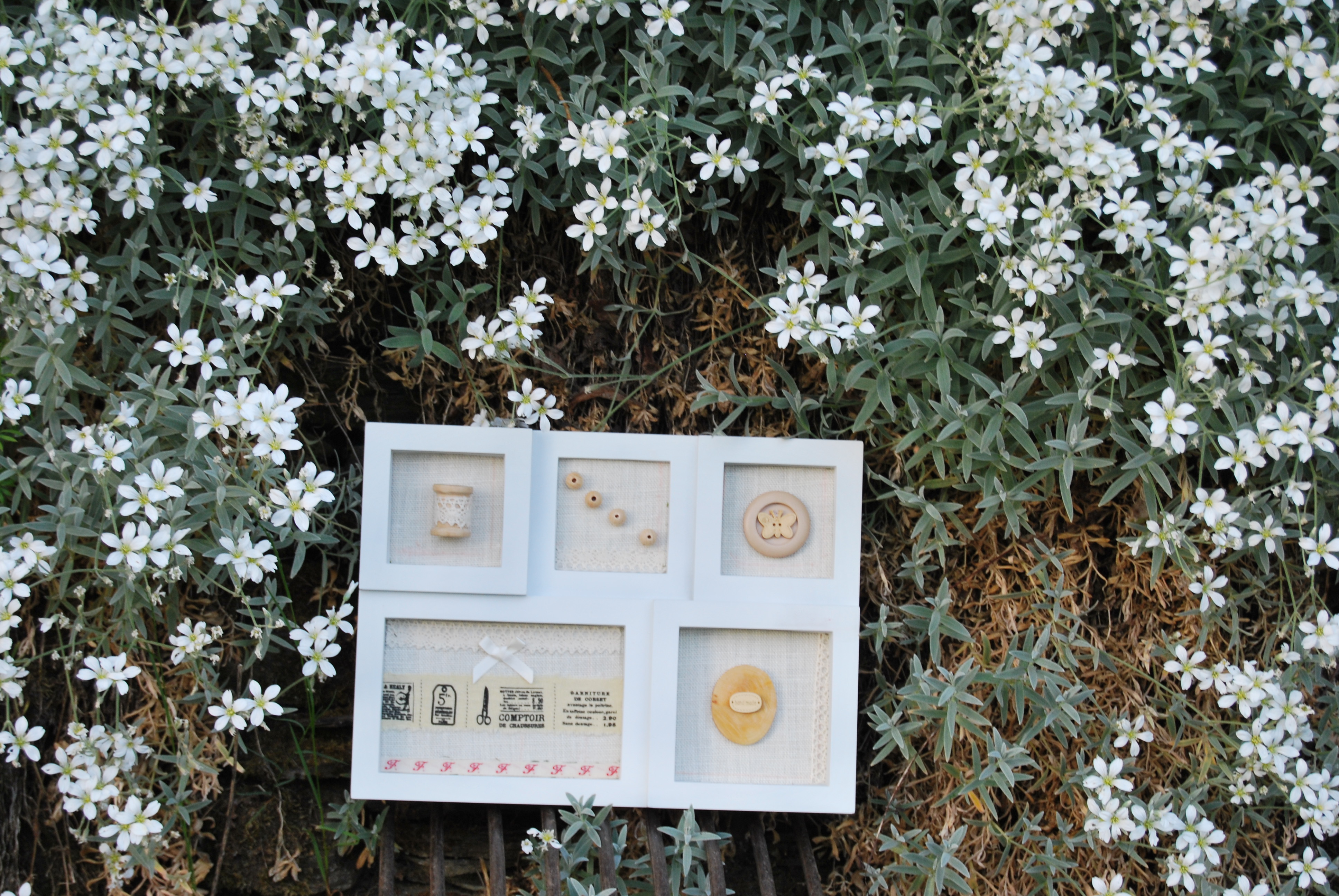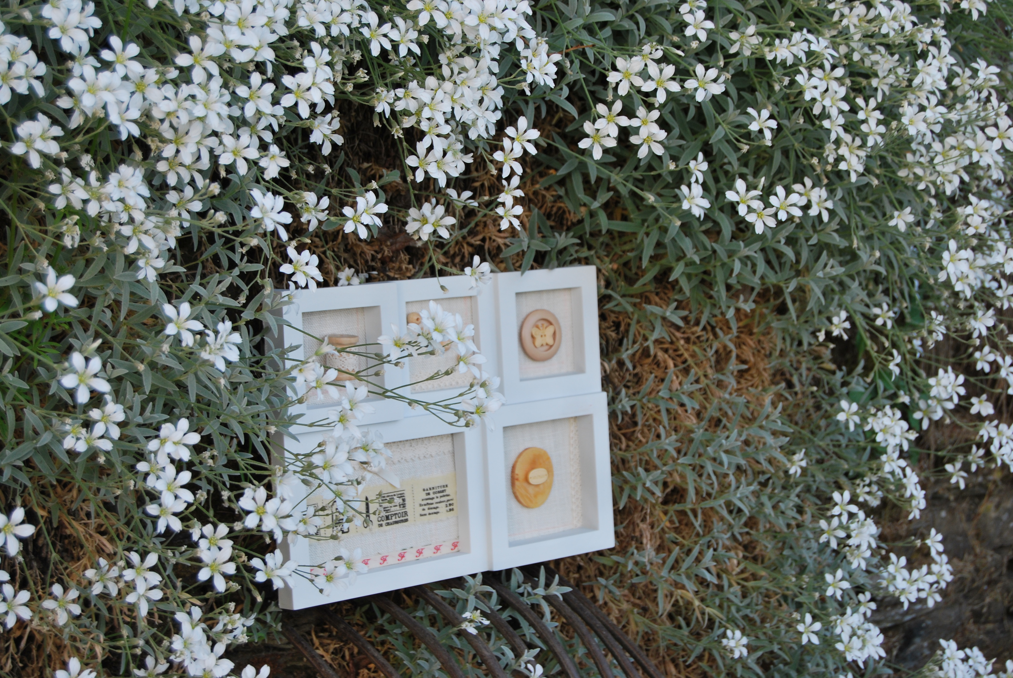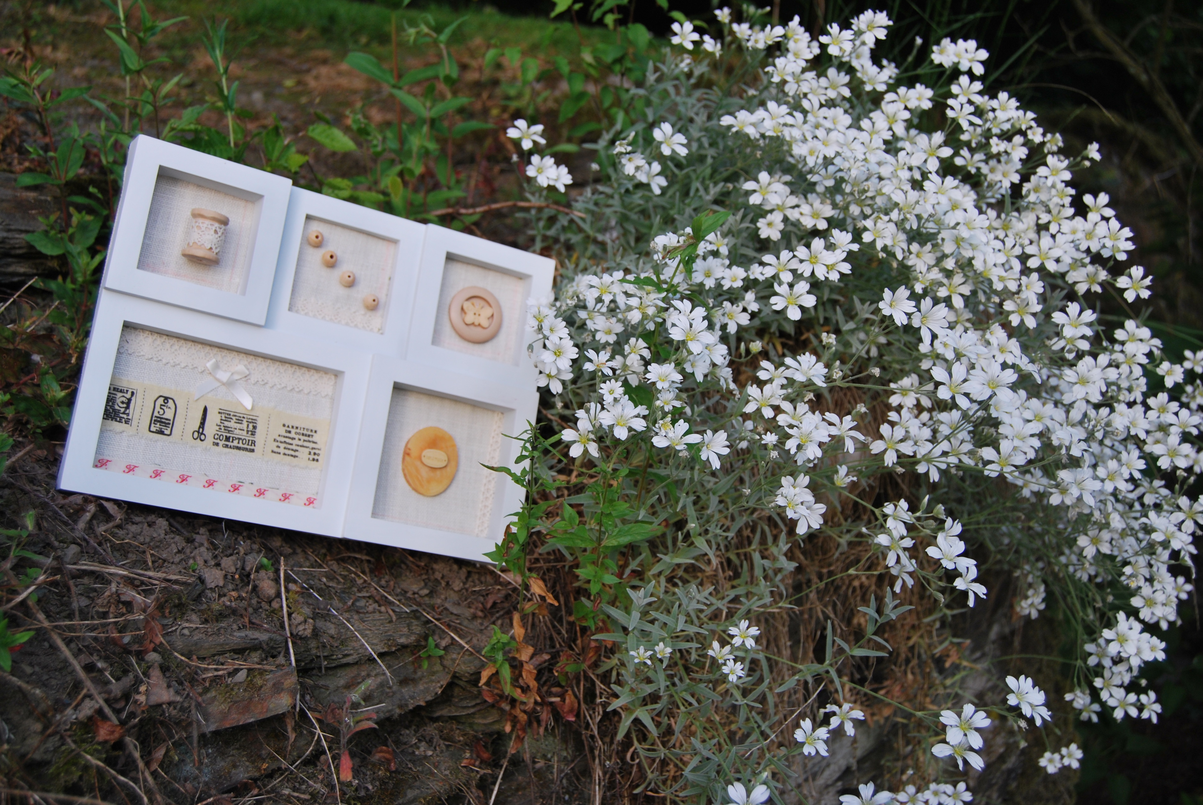 Juste pour le plaisir des yeux … je ne résiste pas à poster une seconde fois aujourd’hui ma dernière « création » toute juste réalisée à partir d’un cadre très bon marché (2,29 € … l’étiquette était encore collée à l’arrière !!) qui au départ, était destiné à être rempli de broderies que je n’ai jamais brodées …. :