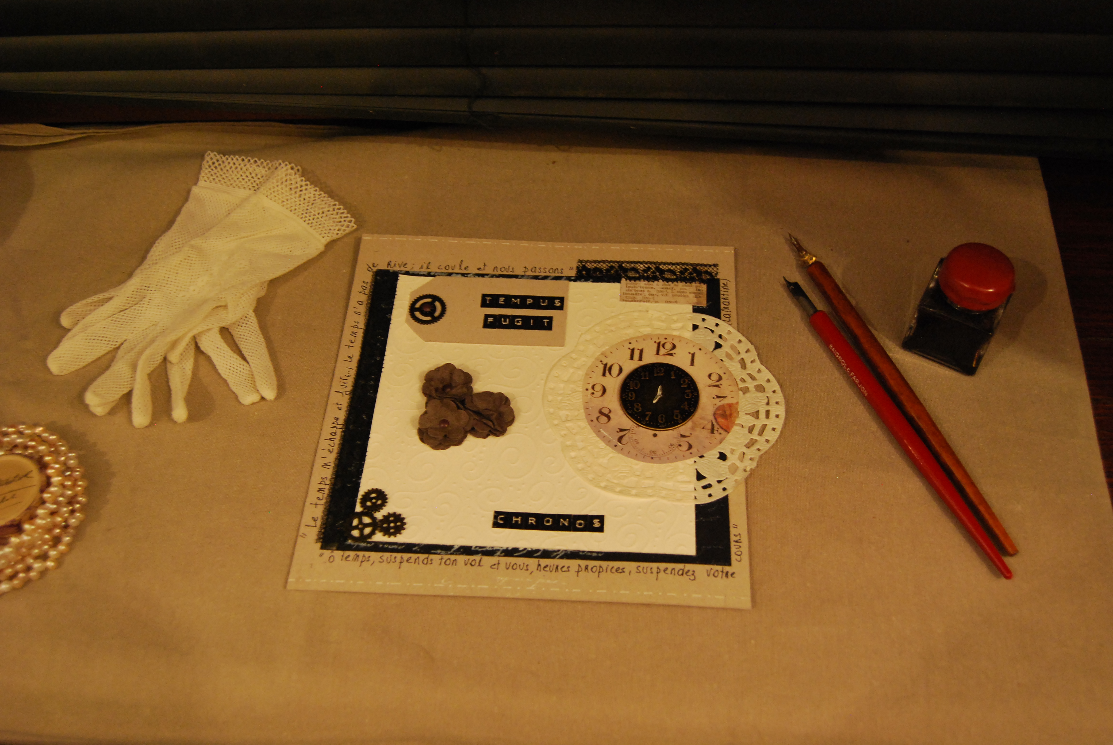 Les gants en dentelle sur cette photo sont anciens et proviennent des armoires familiales !!! De même que l’encrier et les plumes. Mon prochain post sera consacré à Kairos, le temps métaphysique.