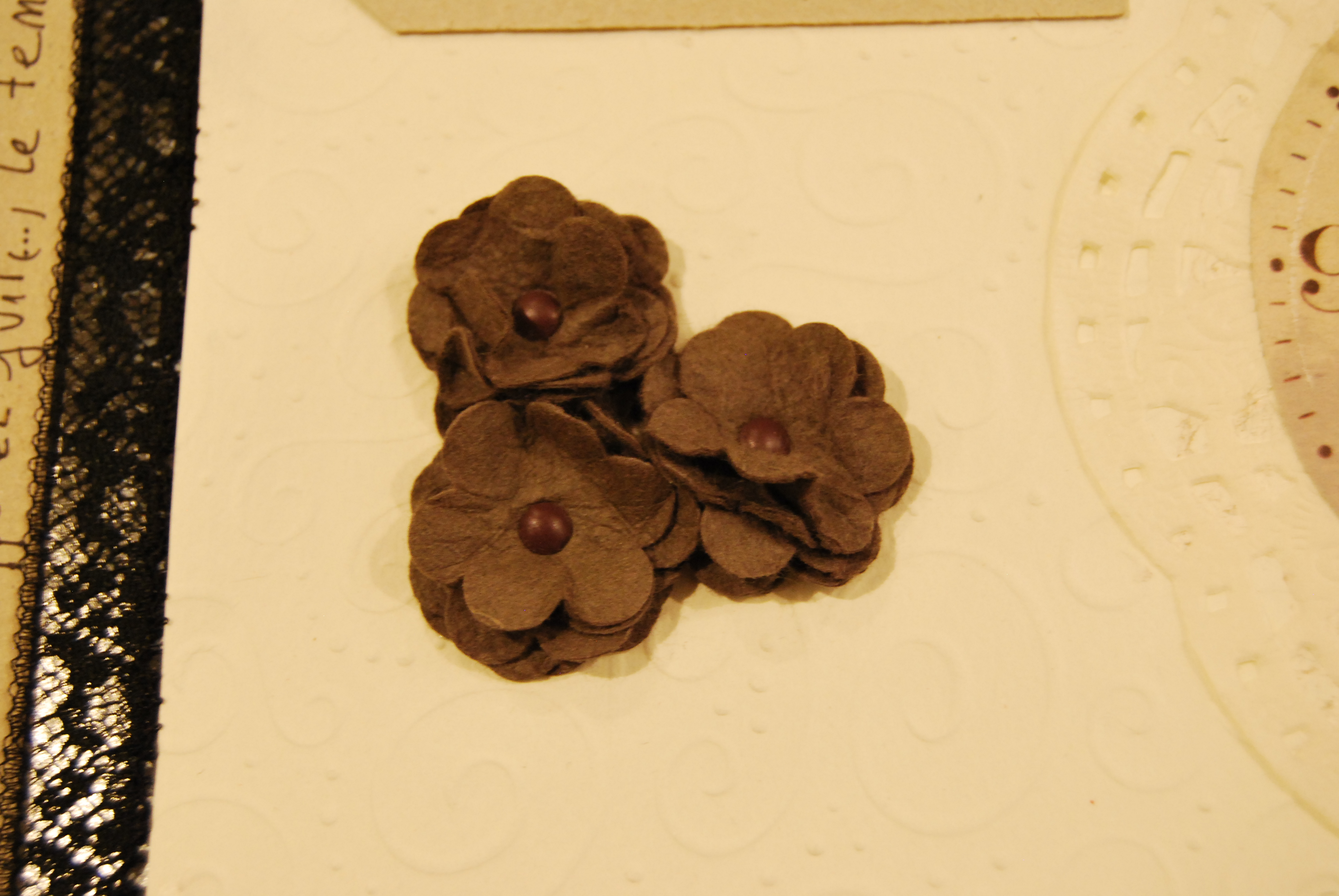 Les fleurs en papier sont faites « main » à partir d’une idée trouvée sur Pinterest.