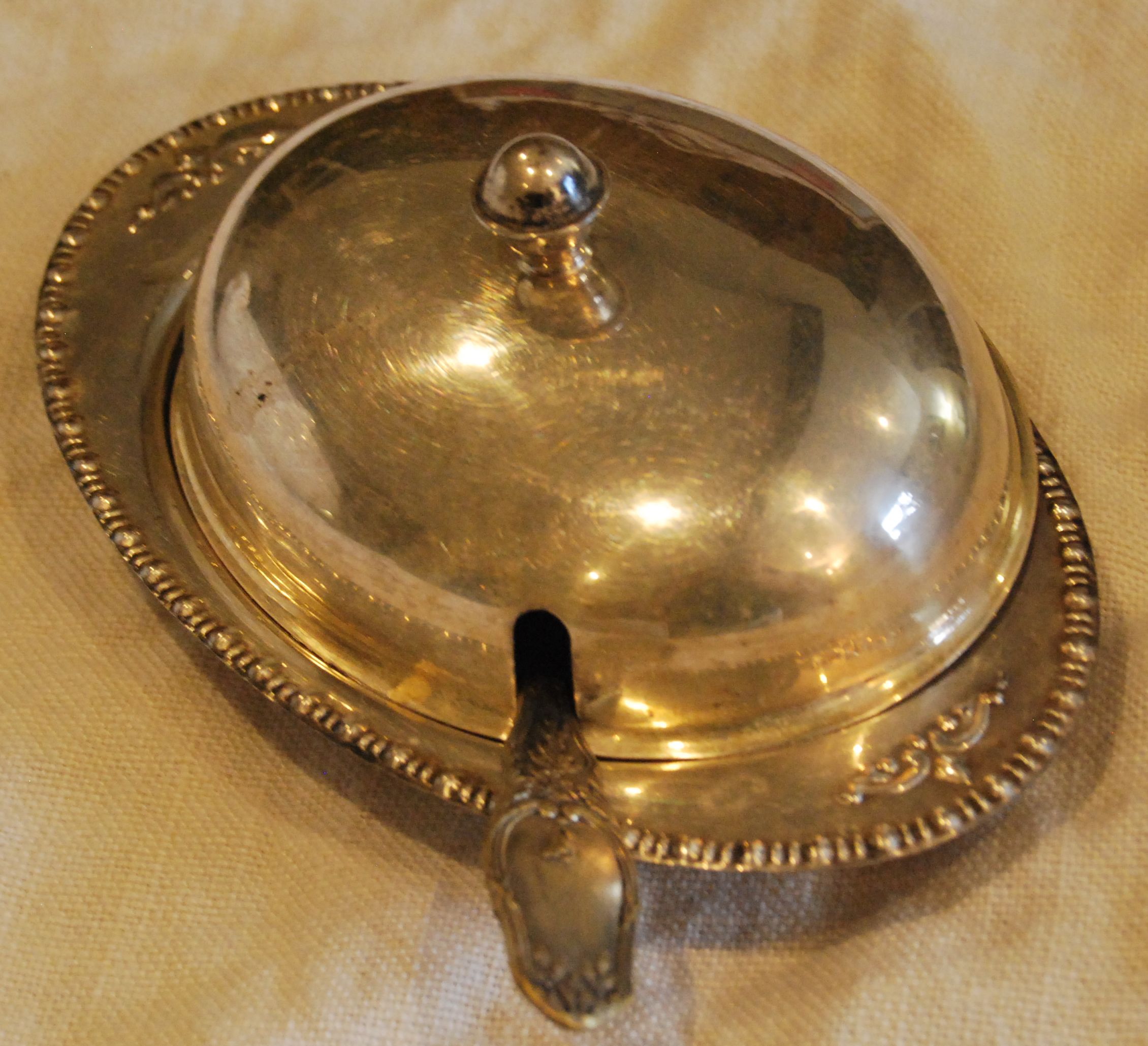 Et parce que la saison des brocantes a recommencé pour nous ce dimanche, une photo d’un beurrier familial que j’ai « re-sorti » de mes armoires et qui brille de mille feux !!!