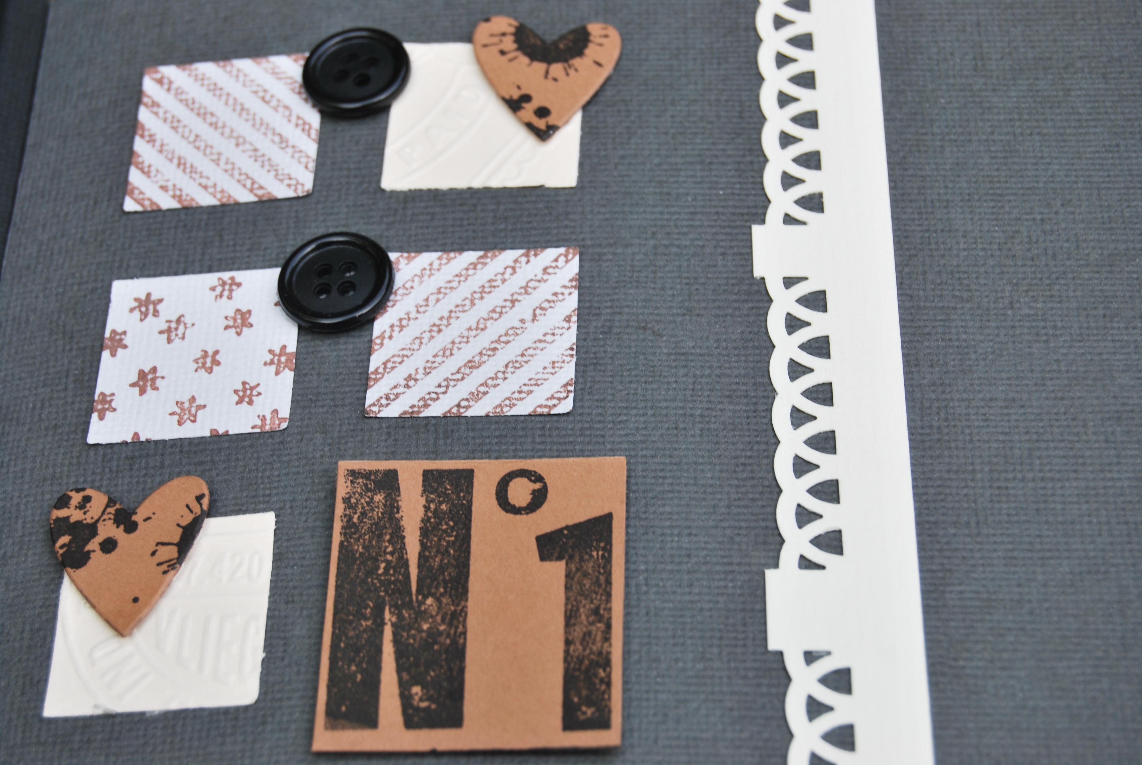 J’ai terminé récemment la couverture et la reliure de « l’album en création » (d’après le kit de juin de variations créatives). Les photos sont choisies et en cours de développement … Il ne me restera plus qu’à les disposer sur les pages intérieures.