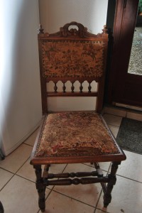 Achetées pour quelques euros sur une petite brocante en mai dernier, 6 chaises qui nous font penser à celles qui décoraient les presbytères d’antan, sont en cours de rénovation. Nous les avons entassées vaille que vaille dans le coffre de la voiture après avoir succombé à leur charme.