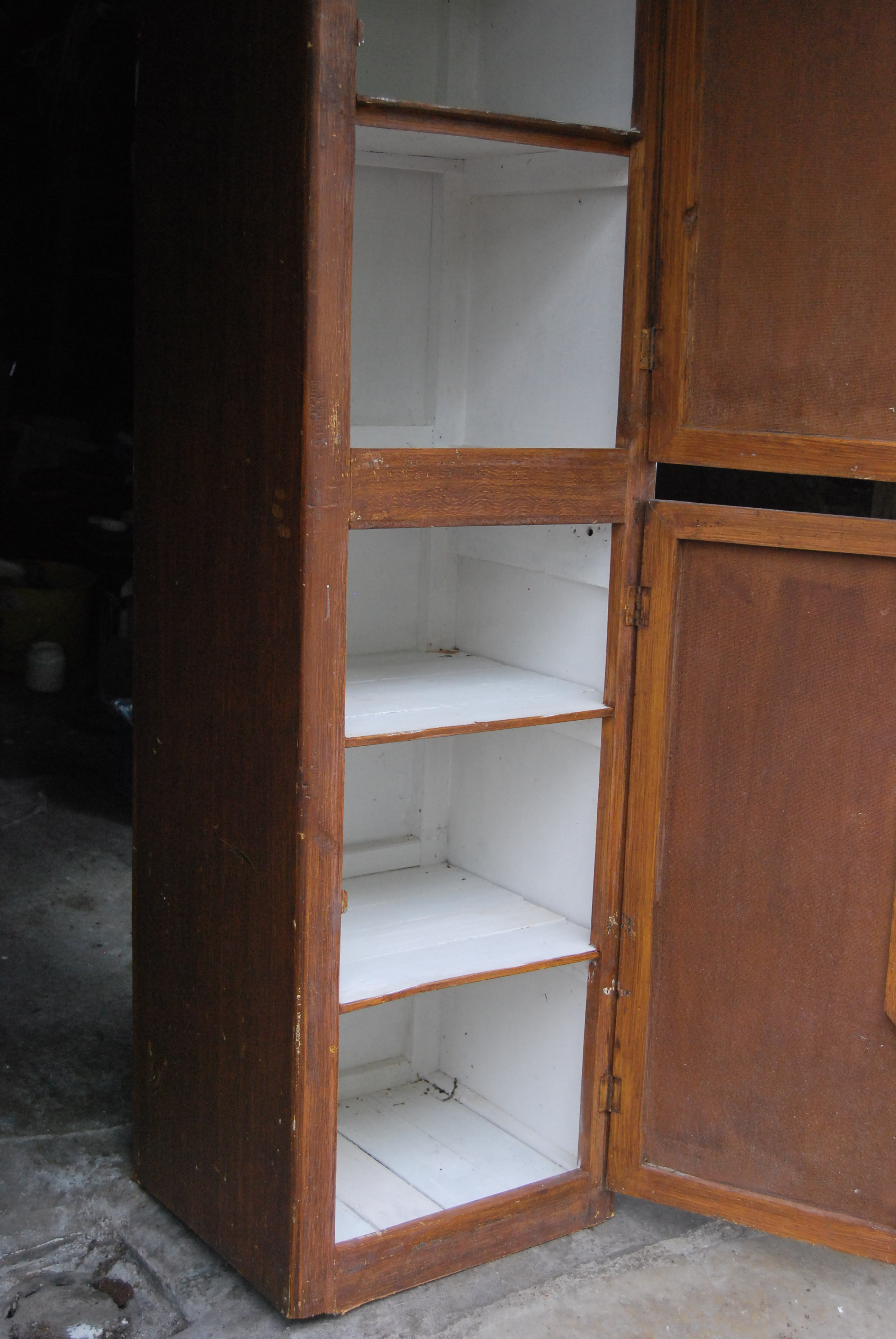 nous relookons une vieille armoire en bois, elle aussi patrimoniale, qui dormait au grenier et qui reprendra une nouvelle vie. Voici un « avant », photo prise in extremis avant la première sous-couche.