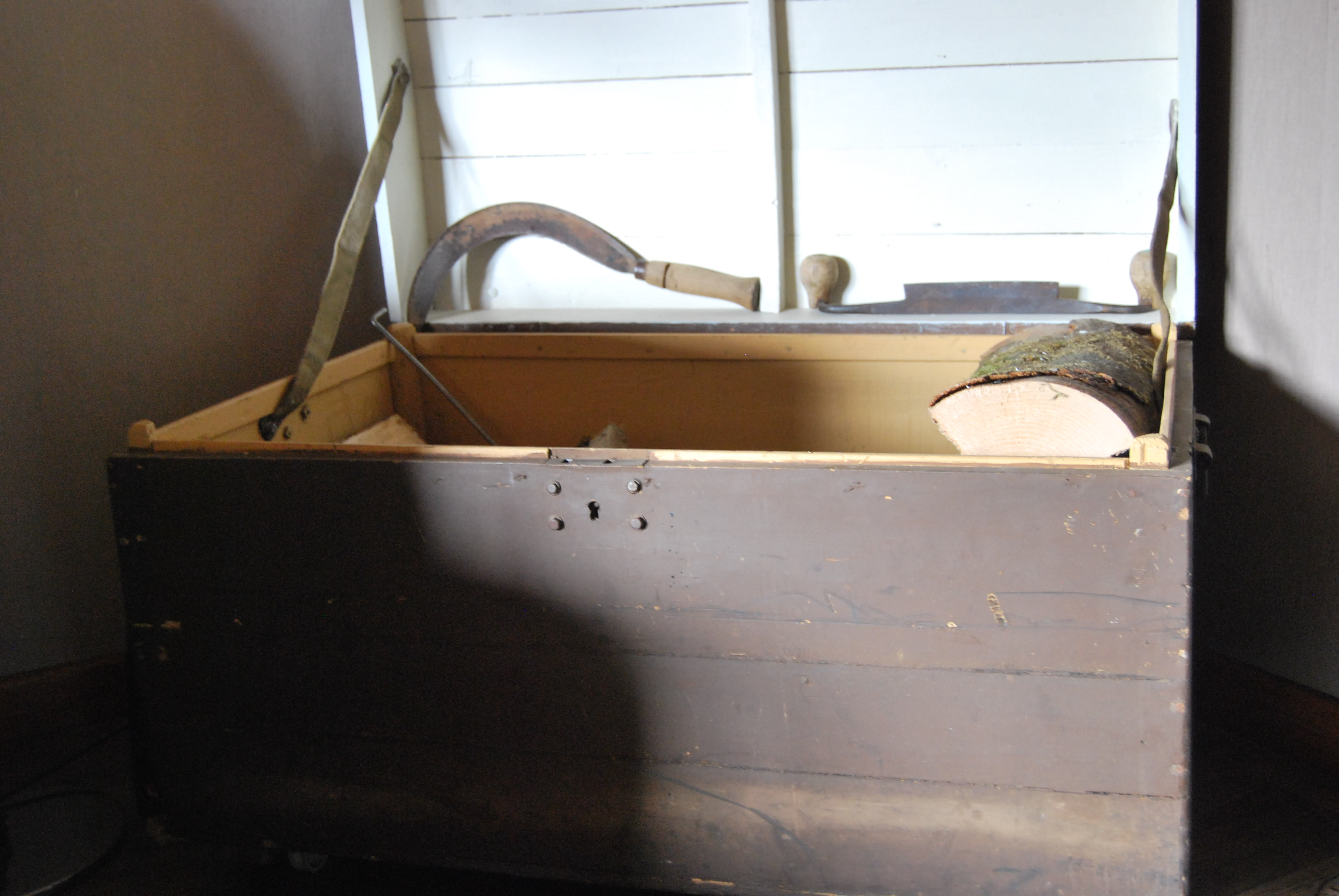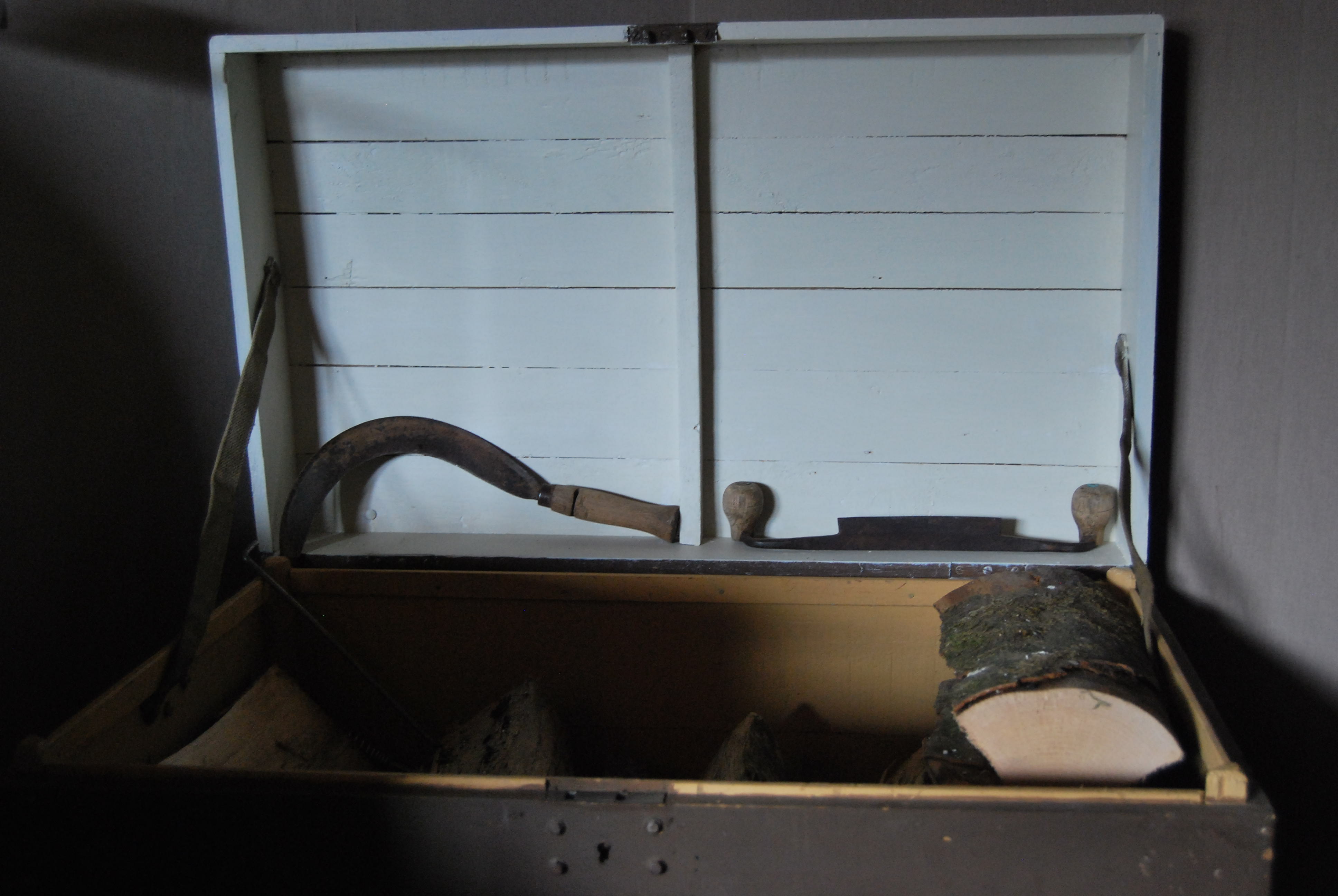 De vieux outils- authentiques antiquités « familiales » – ont été disposés sur le bord pour les mettre en valeur.