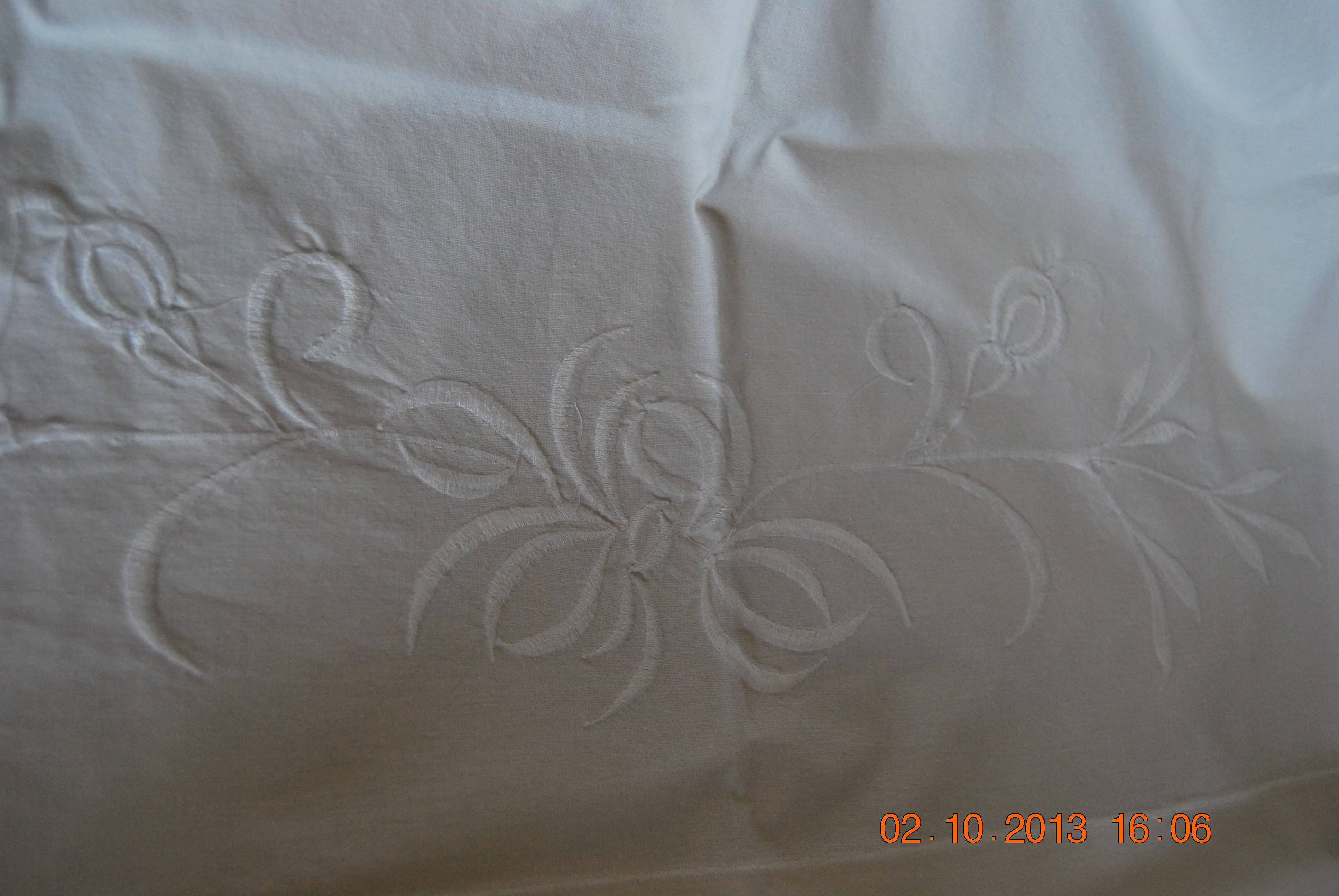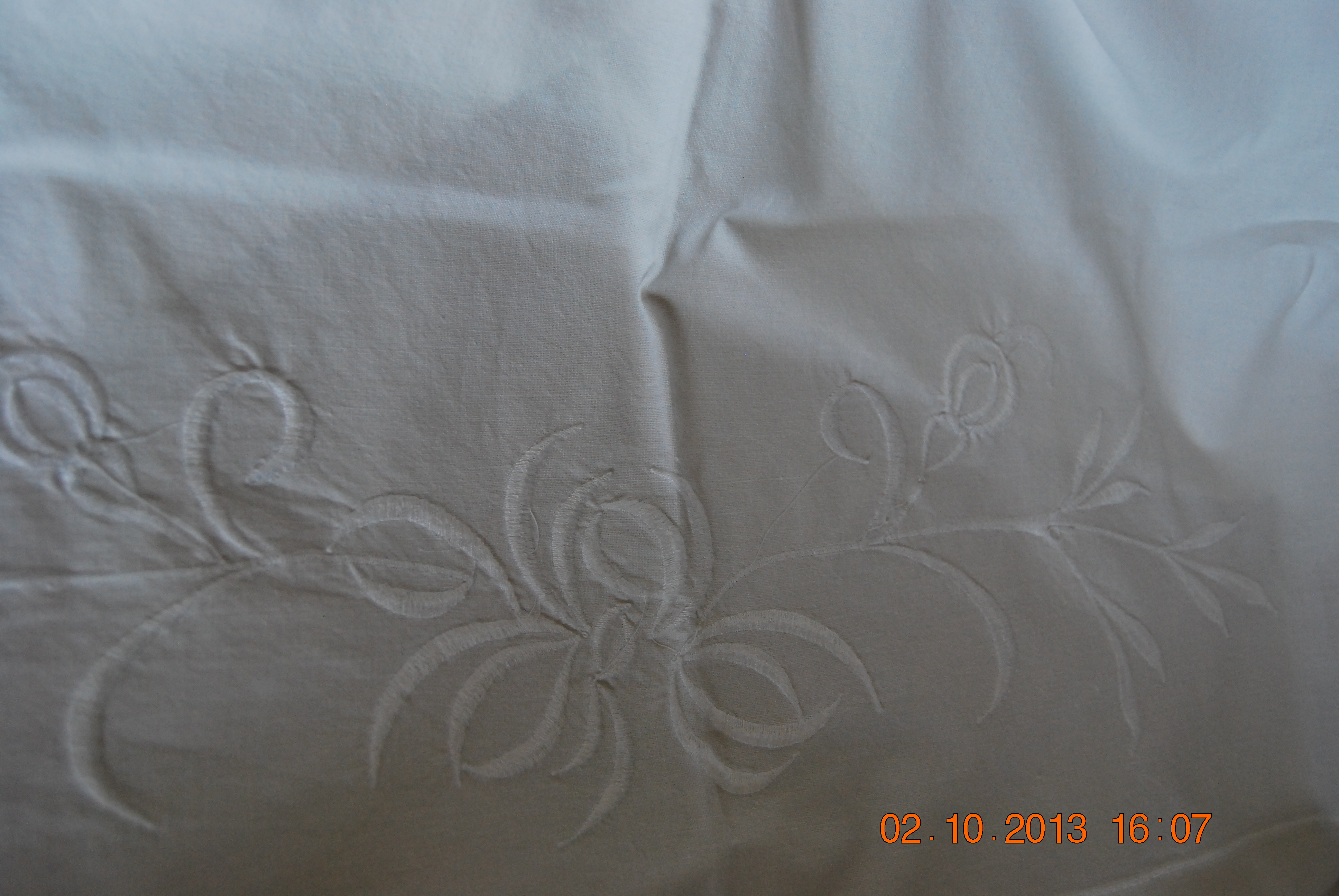 Comme promis dans le précédent article, j’ai photographié entre autres les détails du drap chiné dimanche en cours de repassage …