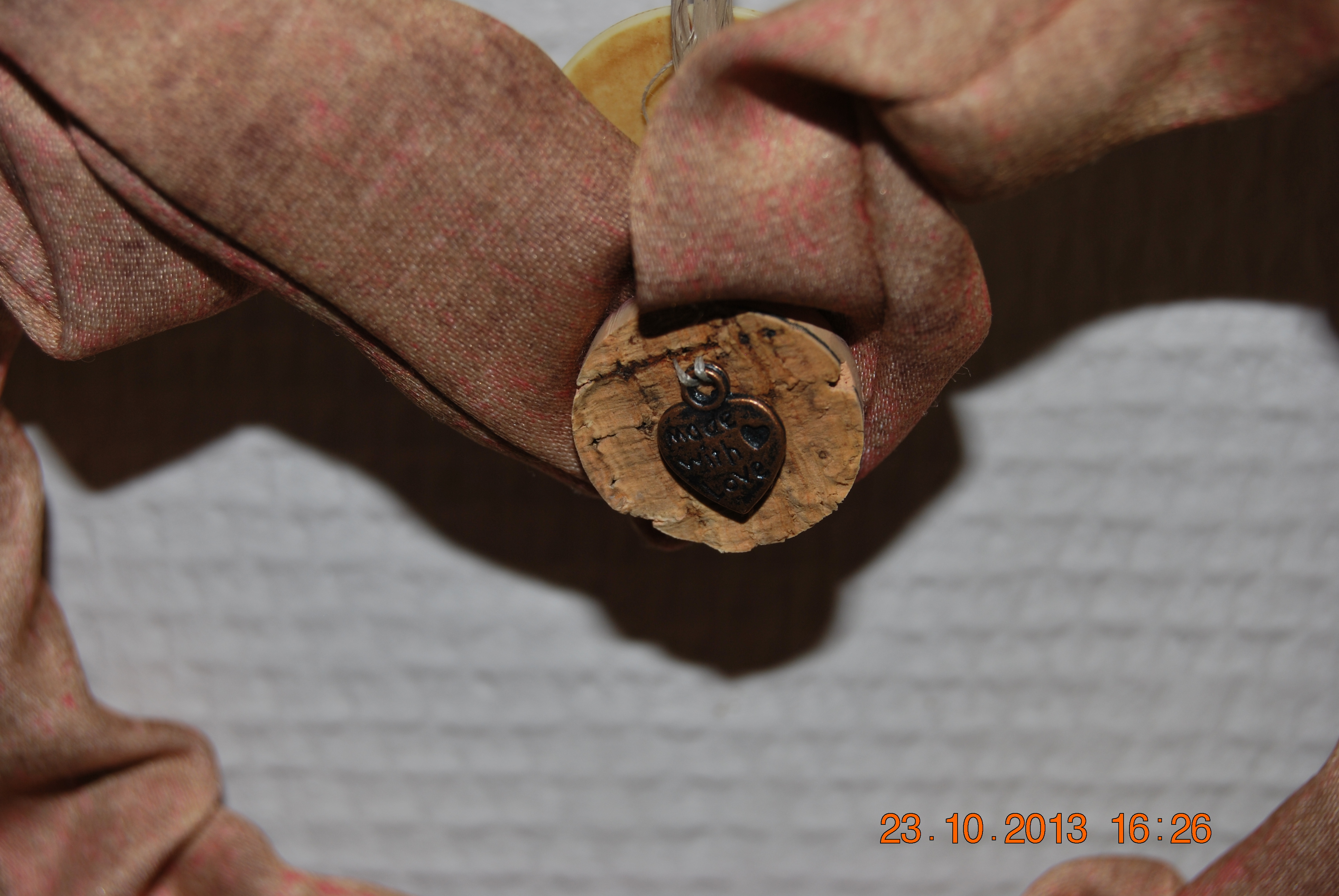 Petite note décorative de mon invention : une rondelle de bouchon de liège sur laquelle j’ai collé un charm.